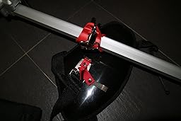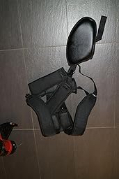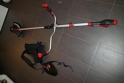 Die Akkusense ist mit einer Zweiarmbedienung ausgestattet die nur mit dem mitgelieferten Tragegurt gut handelbar ist. Der Tragegurt und die richtige Arbeitsstellung der Sense lässt sich am einfachsten beim ersten Anlegen mit Hilfe einer zweiten Person einstellen.