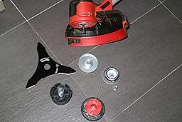 Sie verfügt über eine Einfadenspule und ein Dreizackmesser. Der Zusammenbau geht einfach und schnell. Beim Montieren der Einfadenspule ist uns aber aufgefallen das Normalgewinde verwendet wurde (Festziehen in Uhrzeiger-Richtung). Das bedeutet dass der Motor der Akkusense anders herum läuft wie bei einer Benzinsense. Das wiederum setzt eine umgedrehte andere Arbeits- und Vorgehensweise voraus. Die Arbeitsweise ist hier also von Links nach Rechts. Gewöhnungsbedürftig.