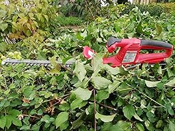 Diese Heckenschere ist auch leichter als eine Kabelgebundene und sicherer, da man nicht ständig auf das Kabel achten muss.