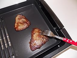 - ZWEIGETEILTE GRILLFLÄCHE: Die Grillfläche teilt sich in zwei Bereiche. Die rechte Seite eignet sich perfekt für Gemüse, Pilze und Meeresfrüchte, da sie die Grillsäfte hält. Die linke Seite verfügt über spezielle Rillen und lässt überschüssiges Fett abtropfen.