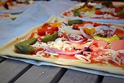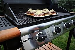 Alle Drehregler aufdrehen und erst mal den Pizzastein Vesuvo V38301 Pizzastein- / Brotbackbackstein Set für Backofen und Grill / eckig / 38×30 cm / mit Pizzaschaufel und Pizzamehl um die 20 Minuten vorheizen. Man kann die Pizza auch ohne Stein machen, dann wird sie allerdings nicht so schön knusprig. Paprika, Mais, Zwiebeln oder anderes Gemüse auf die andere Seite legen und so lange grillen bis auf allen Seiten ein schönes Grillmuster zu sehen ist.
