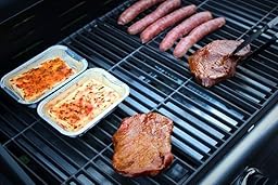 Die integrierte Fettwanne sammelt das herabtropfende Öl und den Fleischsaft auf. Die Wanne lässt sich am besten mit kochendem Wasser und etwas Spülmittel reinigen. Kurz einwirken lassen, schrubben und schon ist alles wieder blitzblank. Die Roste passen leider nicht in unsere Spülmaschine, allerdings geht die Reinigung mit einer Grillbürste recht gut.