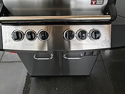 - Gusseiserner Grillrost, hoher Garraum für größeres Grillgut, reichlich Stauraum im Unterschrank