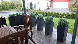 In den Pflanztopf haben wir Bochum künstliche Buchsbäume mit 35cm Durchmesser bestellt und diese mittels Draht an einen Stein gebunden und eingelegt.