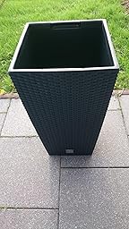 Hier bieten wir Ihnen einen formschönen Blumentopf in Rattan Optik, der optisch ein toller Blickfang für Ihren Wohn- bzw. Eingangsbereich sein wird.Der Blumentopf wird mit einem Kunststoffeinsatz geliefert, sodass man nicht so viel Erde zum Bepflanzen benötigt. Da der Blumentopf aus UV-beständige Kunststoff besteht, ist er sowohl für den Innen- als auch den Außenbereich geeignet. Maße 26 x 26 x 50,5 cmFarbe AnthrazitMaterial PP KunststoffEinsatz 20 cm Fassungsvermögen ca. 26,6 Liter